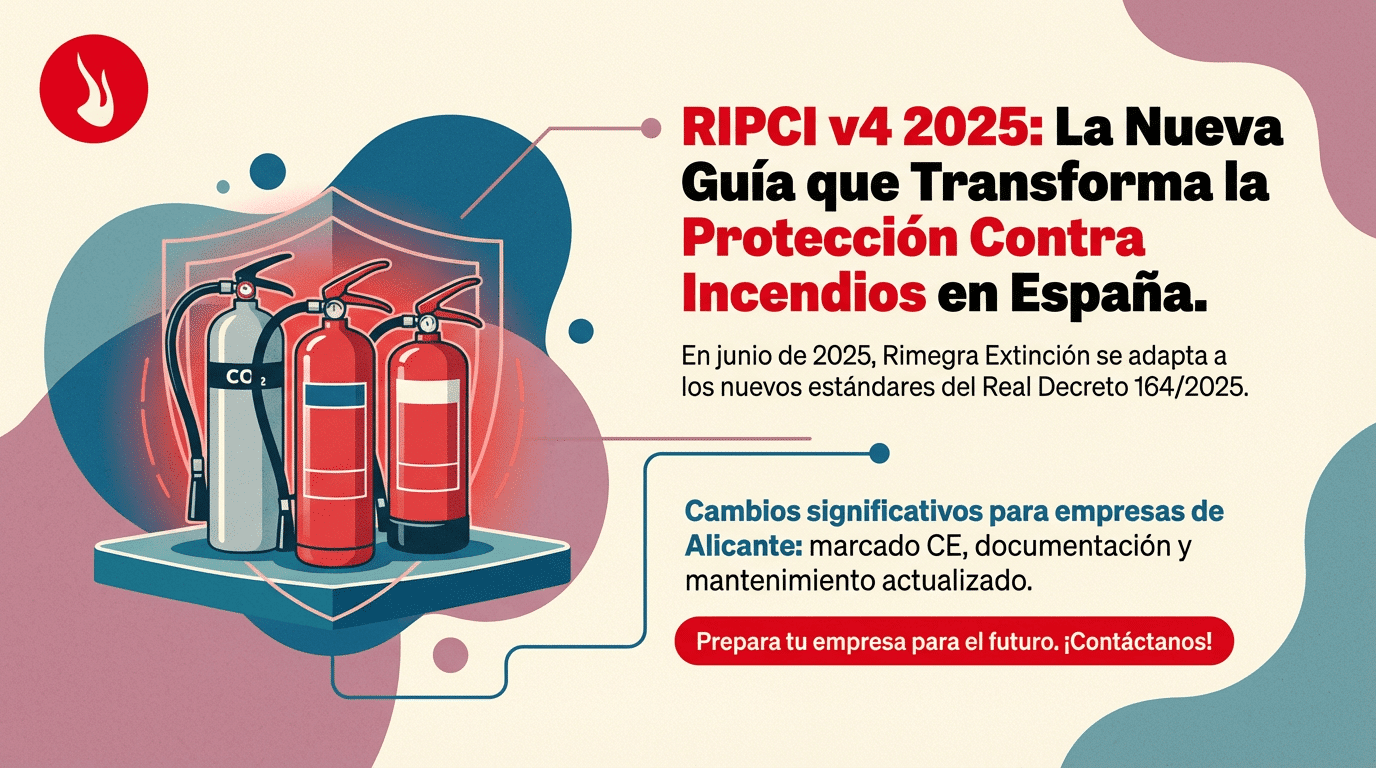 En junio de 2025, el Ministerio de Industria publicó la Guía Técnica de Aplicación del RIPCI en su versión 4, un documento fundamental que marca un antes y un después en la regulación de instalaciones de protección contra incendios en España. Esta actualización, derivada del Real Decreto 164/2025, introduce cambios significativos que afectan directamente a todas las empresas del sector, incluidas las empresas de extintores Alicante y profesionales de protección contra incendios en toda la comunidad autónoma.